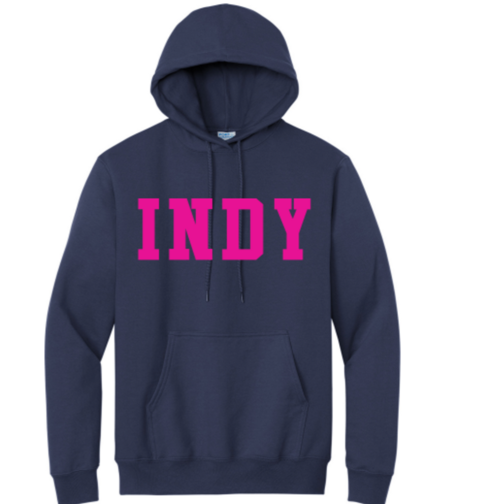 Indy Spirit StoreA classic hooded ADULT sweatshirt with INDY proudly displayed. Oversized Classic Sweatshirt Fit with front pocket and draw string hood. Lots of color to choose from!