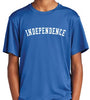 A moisture wicking, performance, short sleeve adult shirt. Printed with INDEPENDENCE proudly across the center front.
