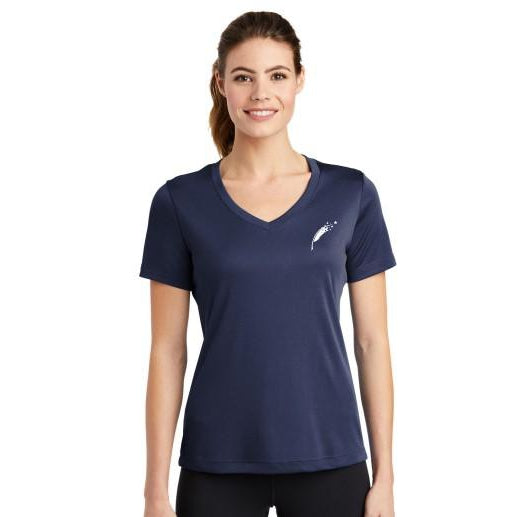 A light weight Sport-Tek ladies v-neck with our signature quill in white. This is a moisture wicking performance fabric perfect for showing spirit.