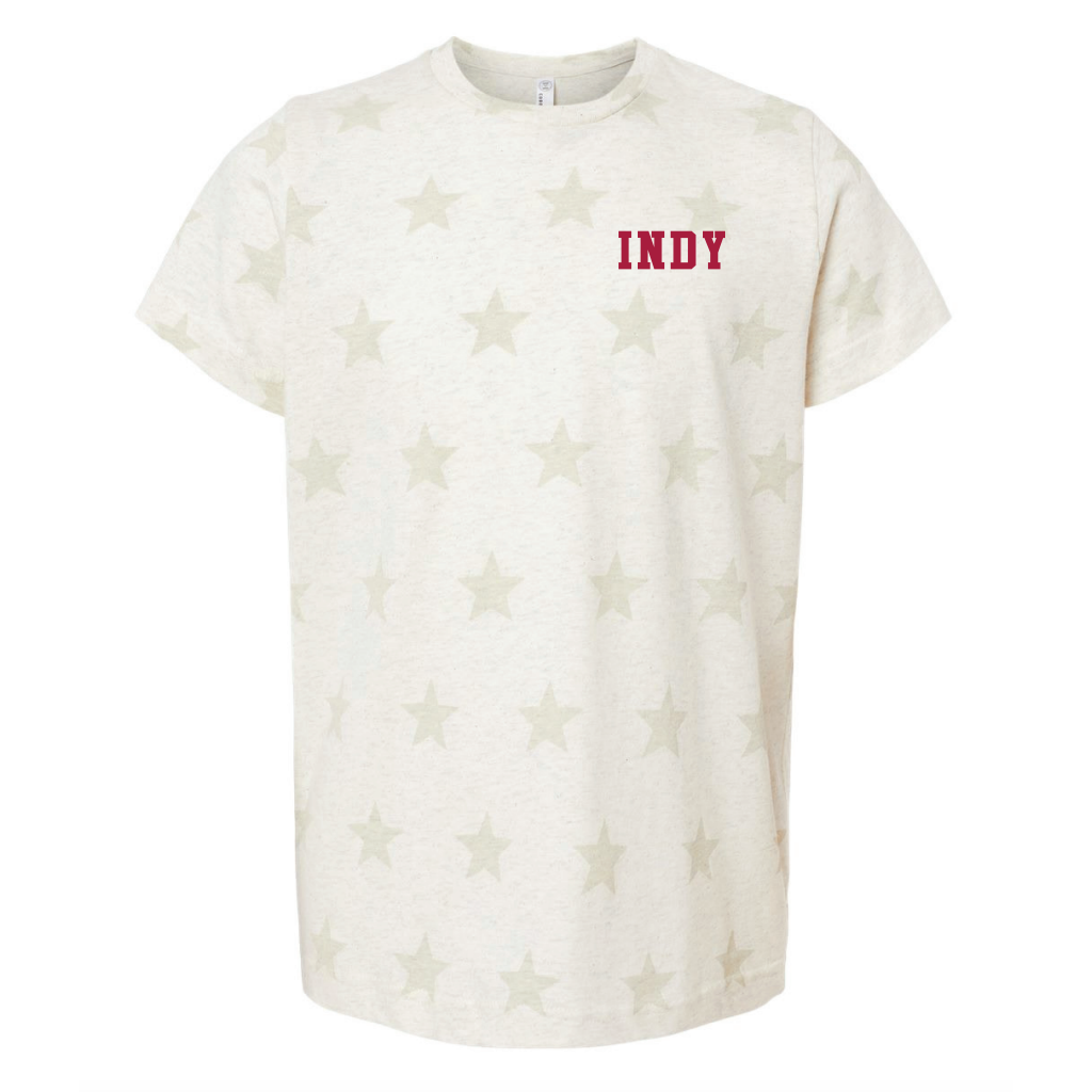 A spirited Indy shirt for the school year! A classic cut with star and our INDY logo. Now, how to choose a color...