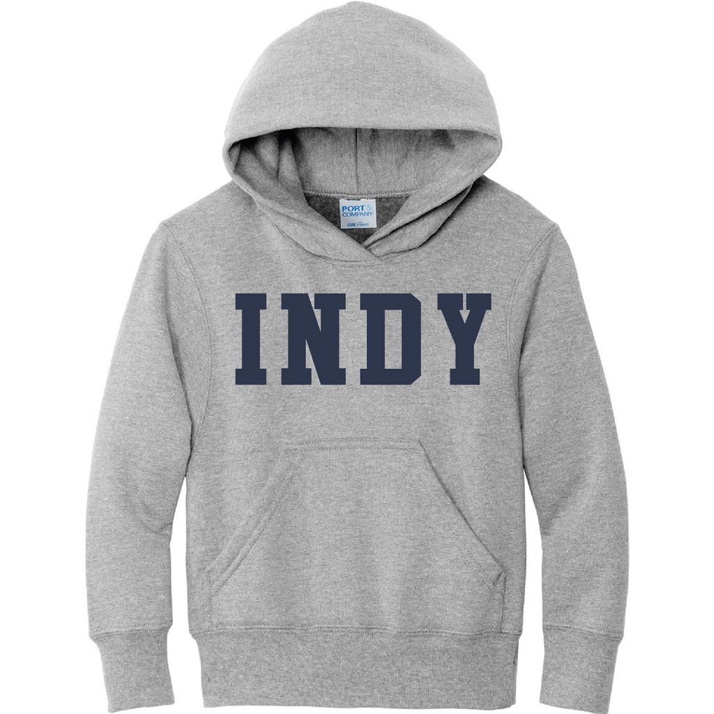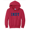 A classic hooded YOUTH sweatshirt with INDY proudly printed on a classic sweatshirt. Oversized Classic Sweatshirt Fit with front pocket. Lots of colors to choose from!