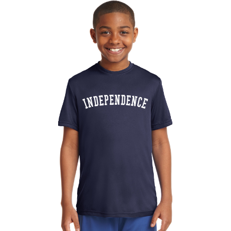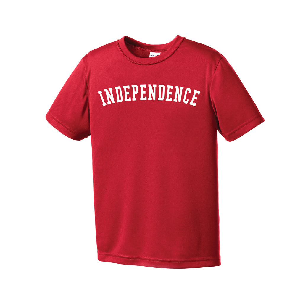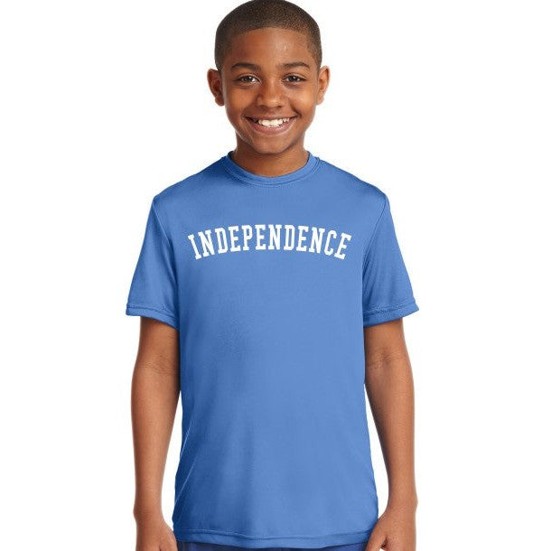 Indy Spirit StoreA moisture wicking performance short sleeve, youth shirt. Printed with INDEPENDENCE proudly across the center front.