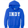 Indy Spirit StoreA classic hooded ADULT sweatshirt with INDY proudly displayed. Oversized Classic Sweatshirt Fit with front pocket and draw string hood. Lots of color to choose from!